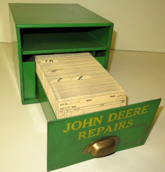 pretty clean and nice original, 11.5"x8.5"x9.5", has a full drawer of cards too, some wear, but overall a very nice example