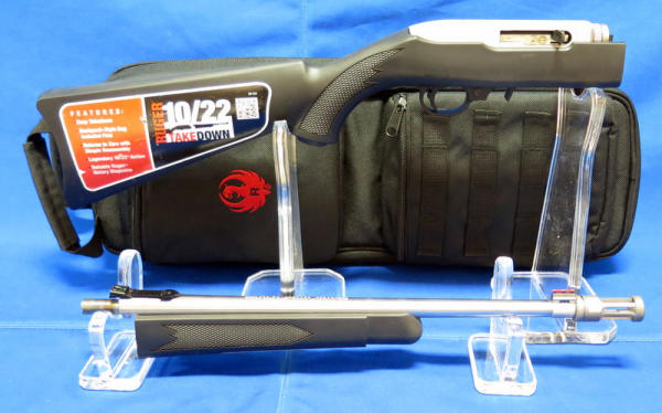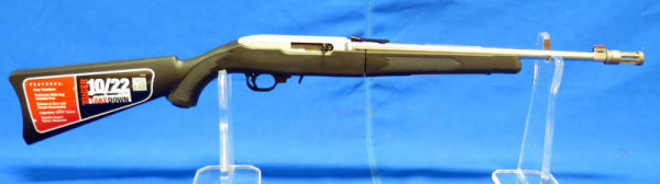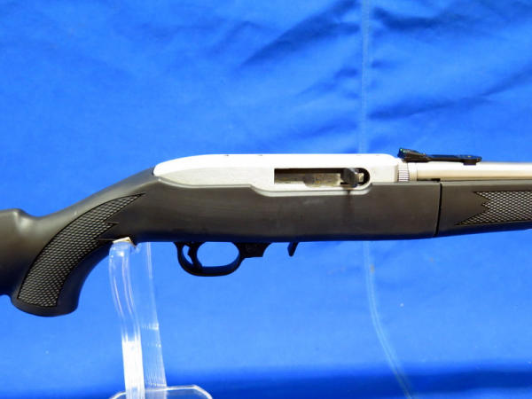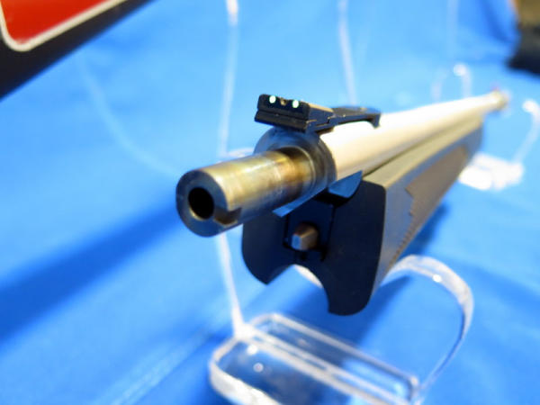 appears to have very little use, possibly unfired; black synthetic; 16" stainless barrel; factory padded case; SN#0010-20273