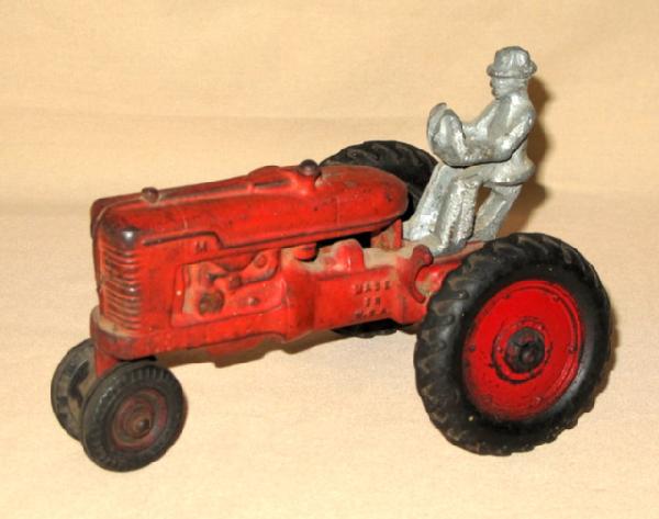 good original tractor, driver looks to be an old replacement, wheels are wobbly, overall pretty good shape