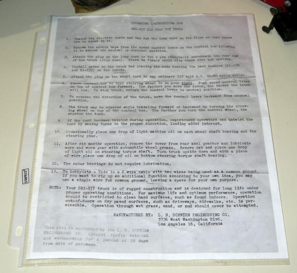 built similar to a Smith Miller, missing the stakes on the side of the box, original paint is pretty nice, includes a copy of the instructions, did not test