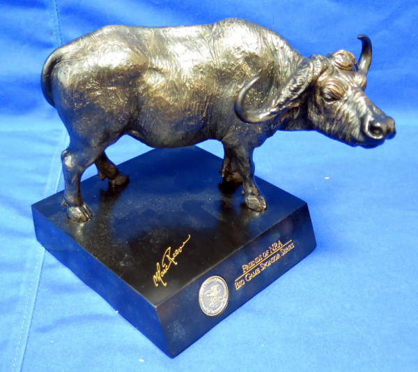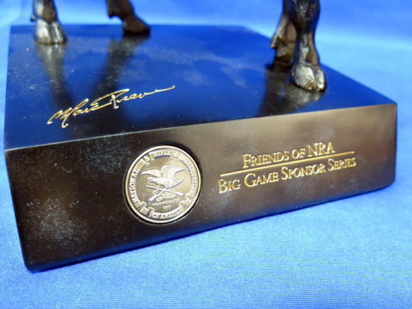#3574; created by designers at the Big Sky Carvers; mint condition; high detail resin cast w/Bronze finish; has box; 7" tall