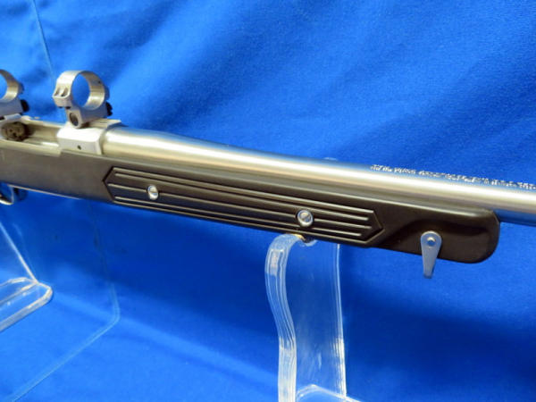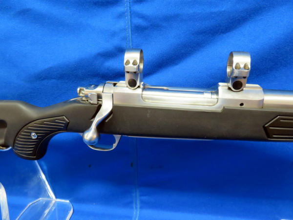 22" stainless barrel; black synthetic skeleton stock; this gun appears unfired; very nice; has scope mounts; smooth action; SN#780-63899