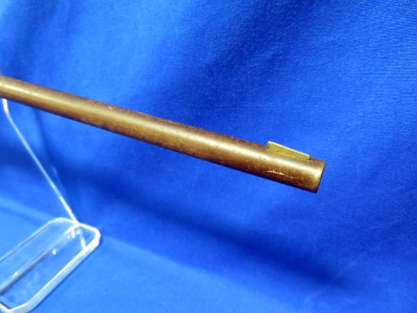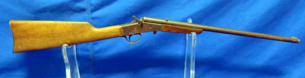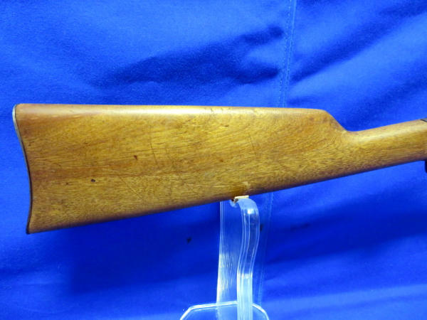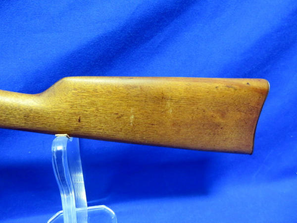 18" BBL; finish is worn on entire gun; believe it's a .22 cal; cocking mech is smooth; no SN#