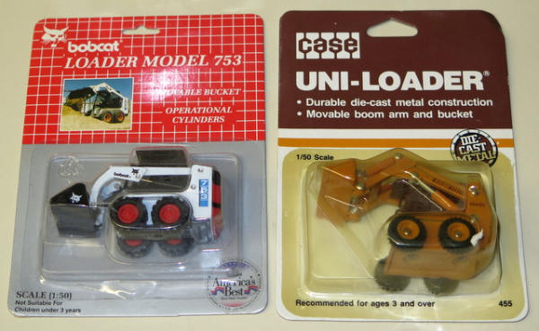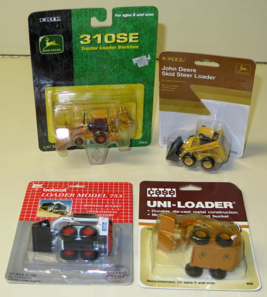skid loaders are 1/50th scale, JD Loader is 1/87th scale, all NIP, 4x the money