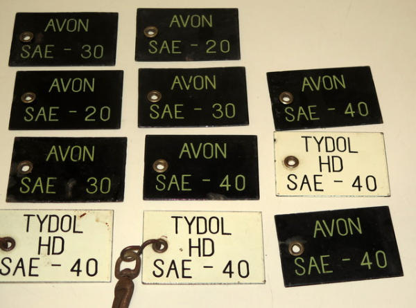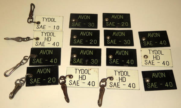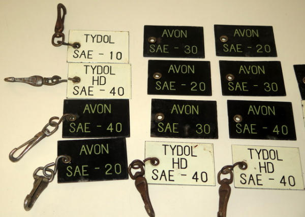 used to clip on the oil bottle racks so you knew what was in them, all to for one bid