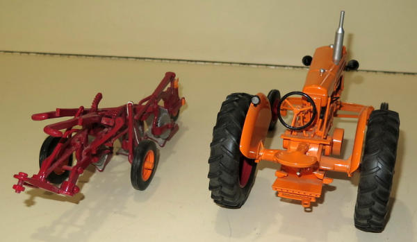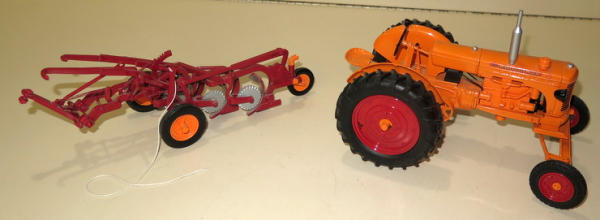Diecast Tractor w/ Resin Cast Plow, near mint, no box, has been displayed, sells as a set