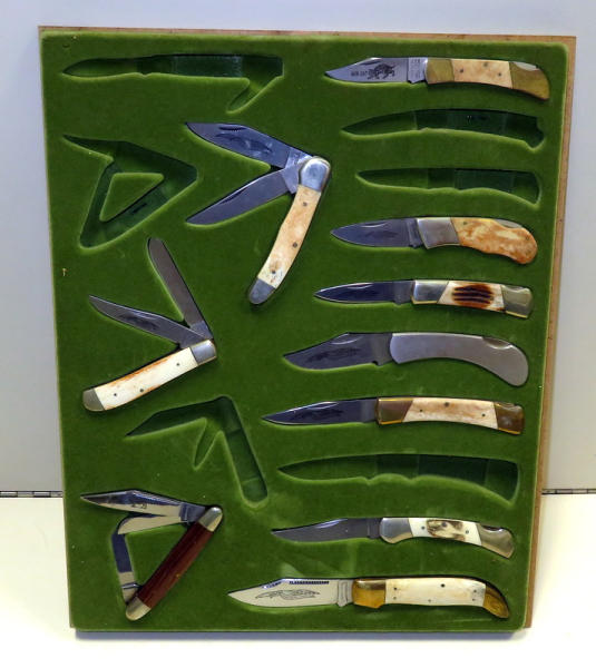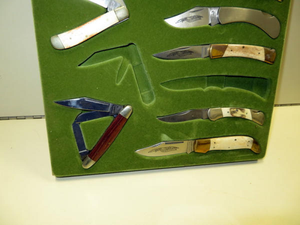all new knives; very nice heavy built pieces; comes with the store display board; sell 10x the money