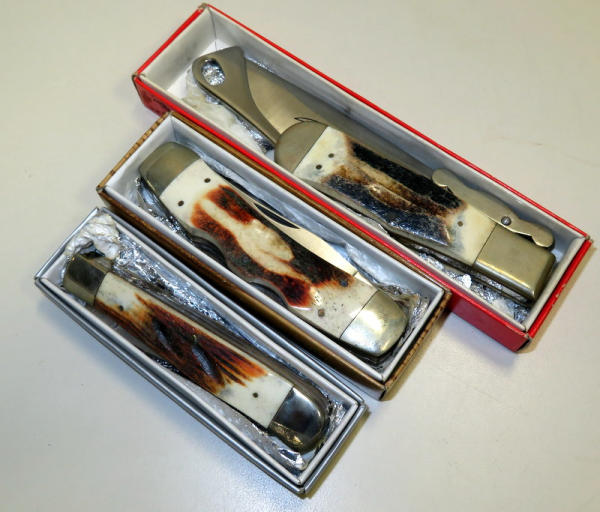 all very well built and heavy knives; biggest one is 6" when folded; sell 3x the money
