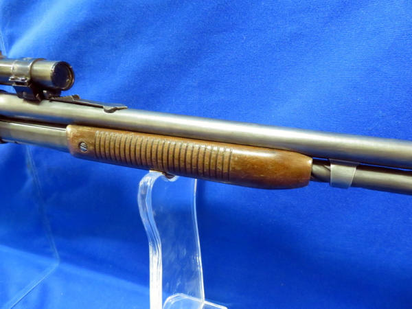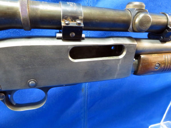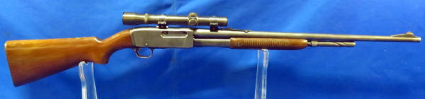 23.75" BBL; bluing has been stripped from barrel & receiver; one side of receiver has some pitting; action is very smooth; wood is solid w/just some field marks; Weaver K25 scope is clear; SN#42396