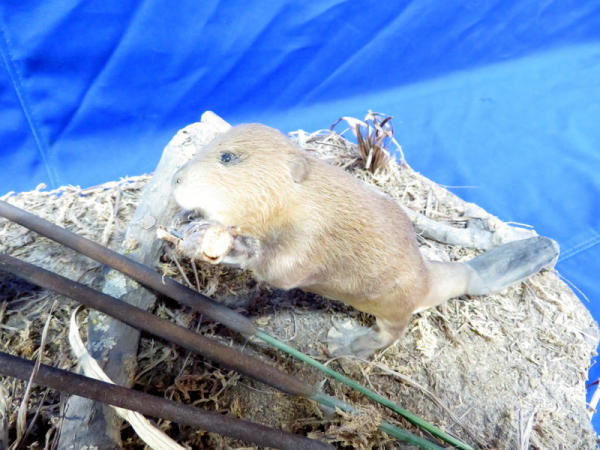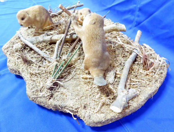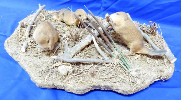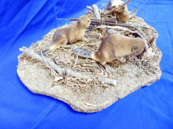 WOW, awesome piece of taxidermy! Has 3 baby beavers that were freeze dried; very well done; light weight; display base is 24" long, animals are about 9" from nose to tail long. No Shipping - LOCAL PICKUP ONLY!