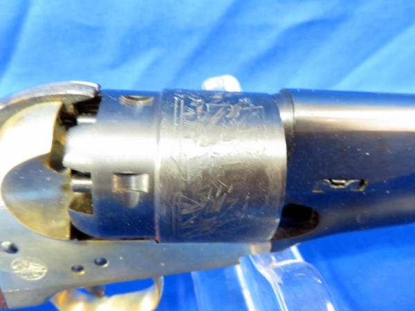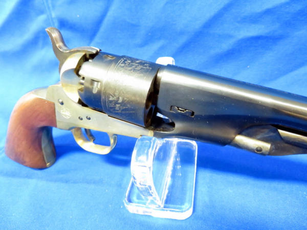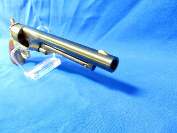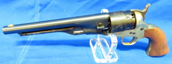 never fired; 8" BBL; very nice bluing & brass finish; wood grips; has a padded cardboard display case; nice looking gun; Engraved cylinder; SN#A31003; no transfer needed - Phillip Steckly Collection