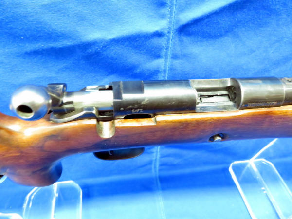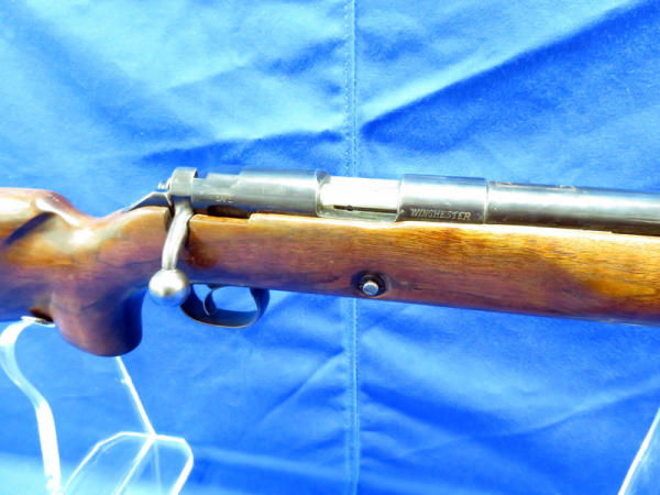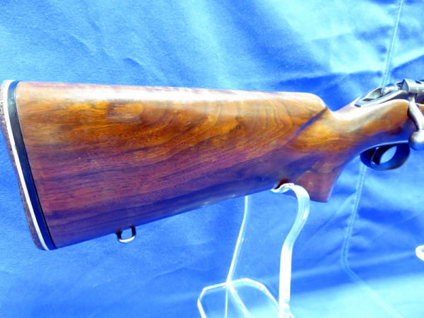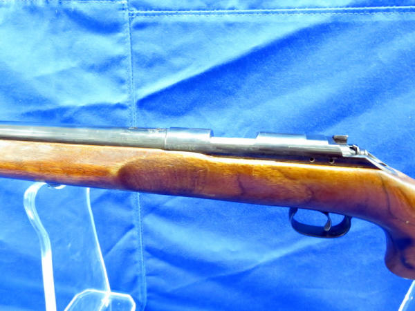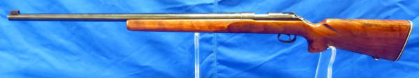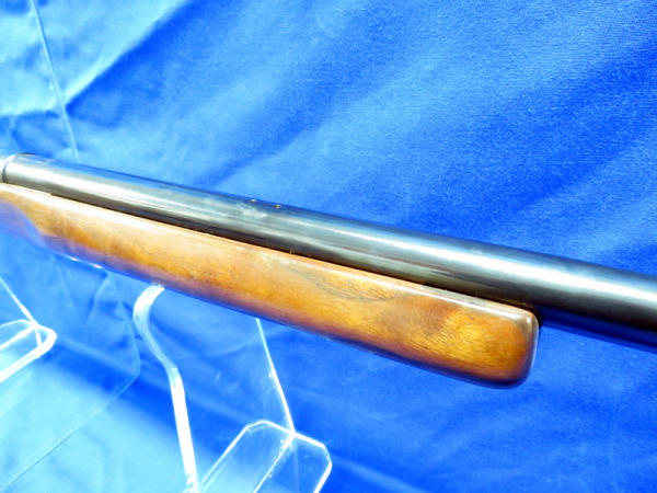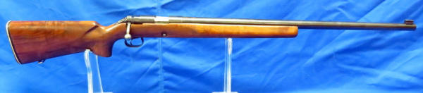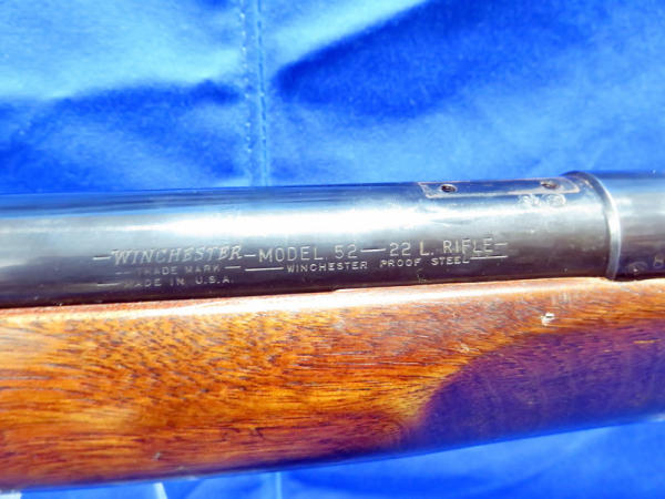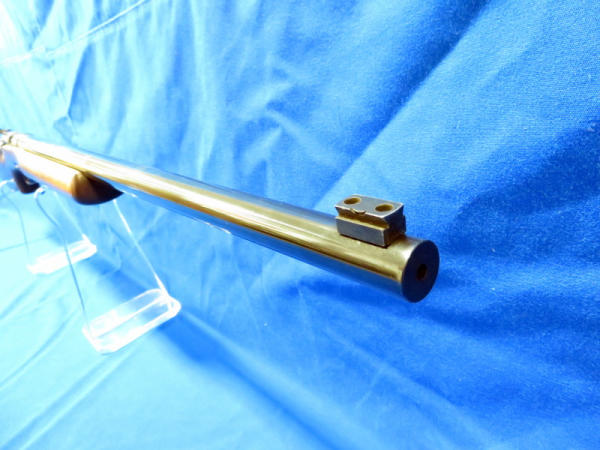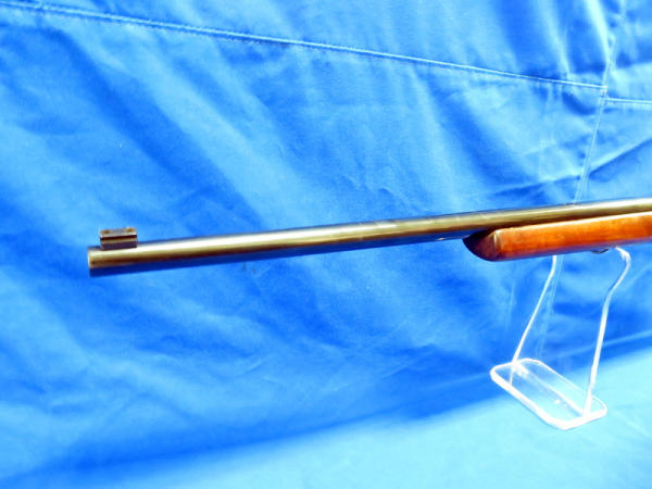 28" BBL; bluing is about 90% good, has a few spots of thinning; been drilled & tapped; wood is solid w/nice color and few marks; action is a little gummed up; very heavy barrel & wide forearm; SN#82502C - Guy Hopkins Estate