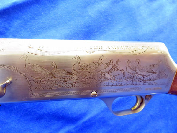 28" vent-ribbed BBL; gun is near mint & appears unfired; heavy factory engraved receiver w/Redlin duck & goose scenes for the Ducks Unlimited; 2.75" & 3" chamber; FC; Belgium Made; beautiful gun, no box; SN#89DU003994 - Guy Hopkins Estate