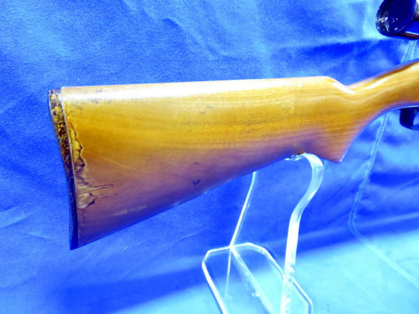 23.5" BBL; nice finish on entire gun; does have some water damage to the butt of the stock; Weaver K3-C3 scope is nice and clear; no SN#; nice gun