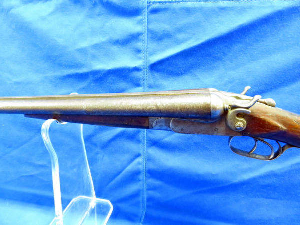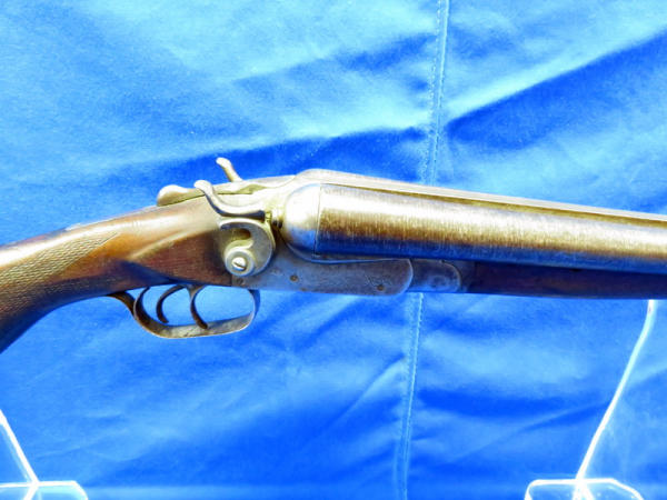 30" Damascus barrels; wood is solid with dark color; break action is smooth; double trigger & hammers work; FC on both; SN#106496