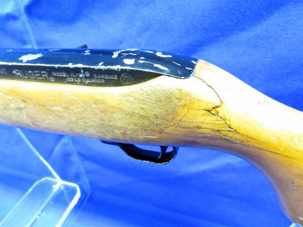 18.5" BBL; finish on entire gun is worn; crack in stock behind the receiver; no clip; SN#231-05721