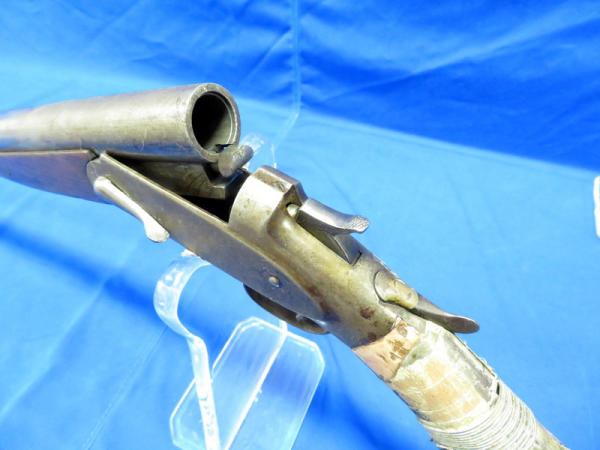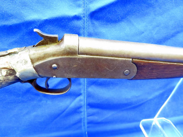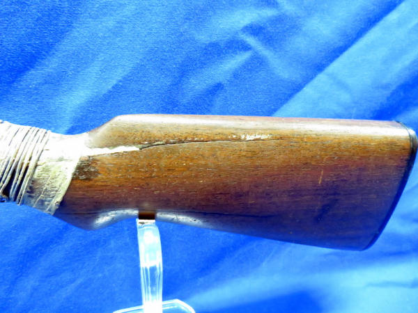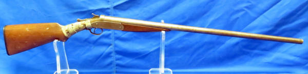 32" BBL; bluing is very worn; gun is rough shape w/lots of damage and repair to the stock; break action is stiff; sold by Sears; no SN# - Guy Hopkins Estate