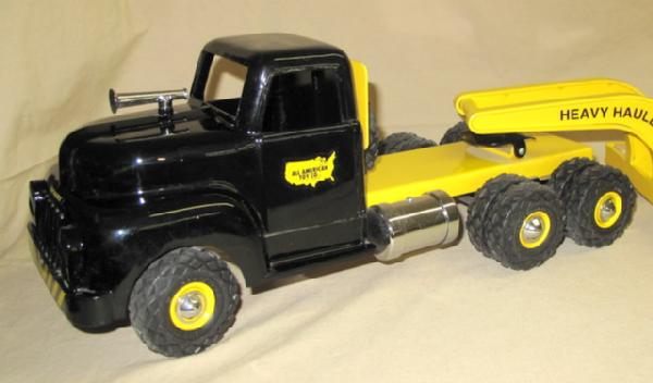 Super Sharp Truck w/ lo-boy trailer, over 4' long when hitched, looks great w/ a Doepke CAT on the back end, mint, no box
