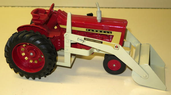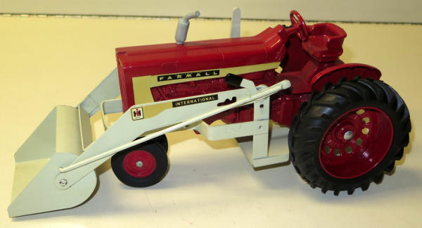 Tractor has a tiny chip on the nose and fender, overall is 98% condition; loader is mint; round top fenders and metal rear rims variation