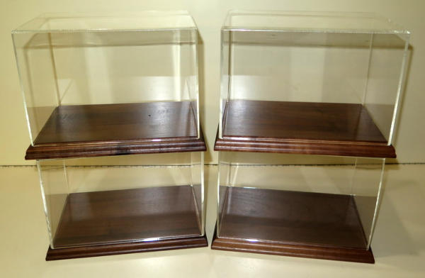 each 9.5" long, 6" tall, 6" wide, dark wood bases, sells 4x the money