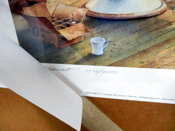 child sitting in barber chair; signed & numbered, 1536/2000; 24.5"x19.5"