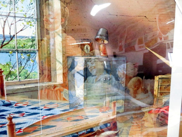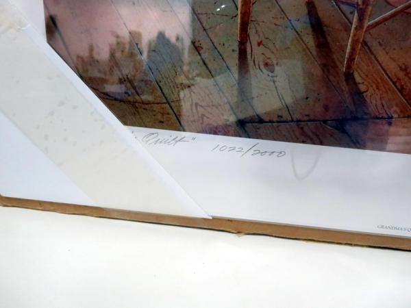 Ladies making a quilt; signed & numbered; 1022/2000; 29.5"x23"