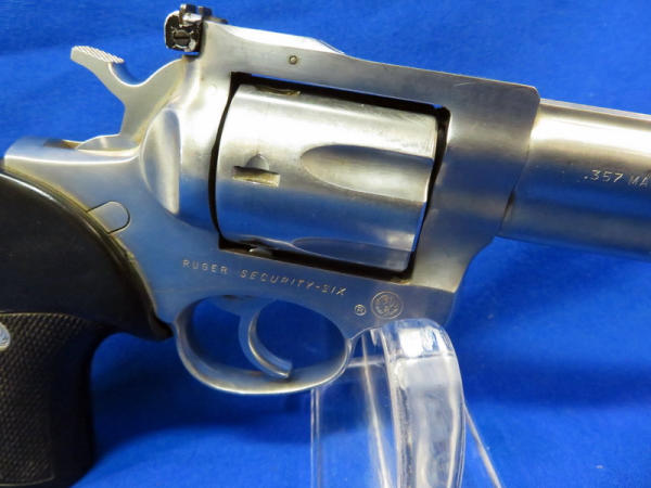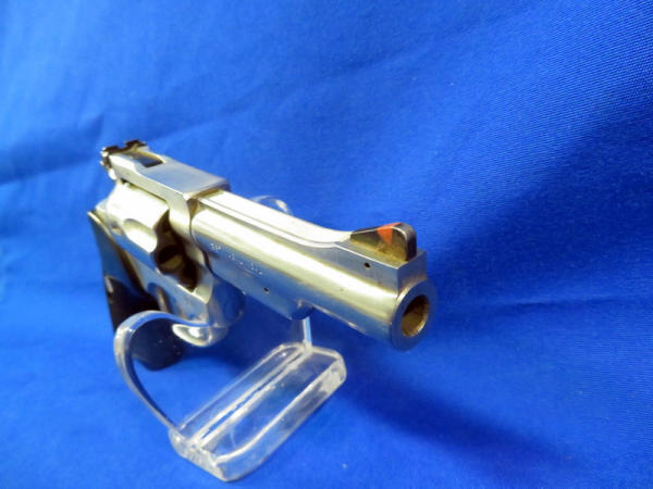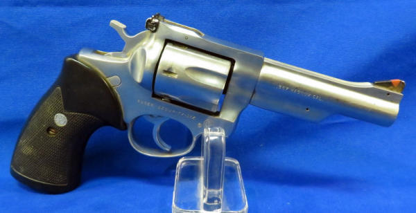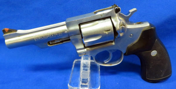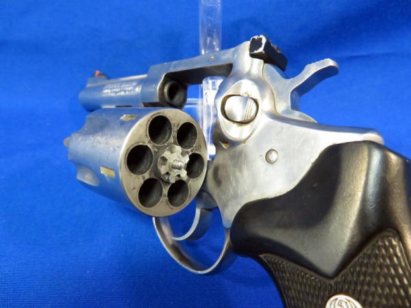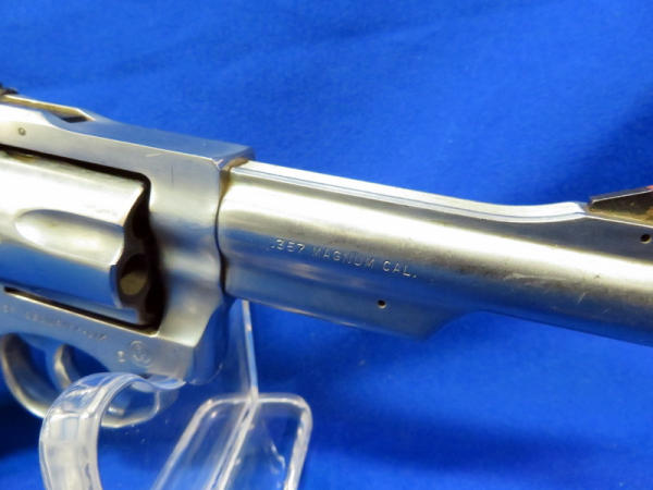 4" ribbed Stainless barrel; DA; 6-shot; factory rubber checked target grips; red ramp front sight; some wear from use but overall nice shape; SN#160-38952