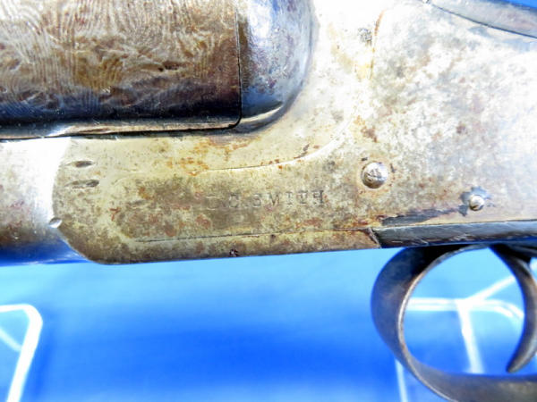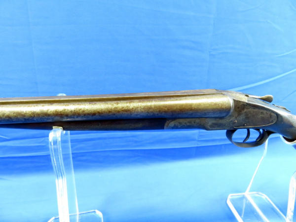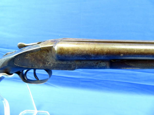 30" Damascus Barrels; smooth break action; tarnish and finish loss on barrel and receiver; wood is solid w/dark finish; FC on both; no SN#