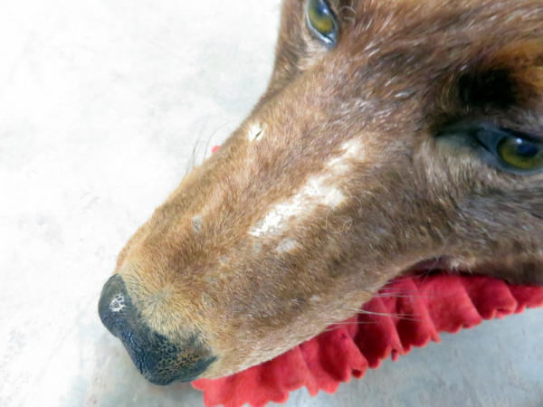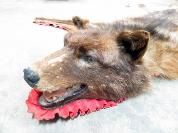 81" long from nose to tail; has head and claws; great looking; some minor damage on top of nose