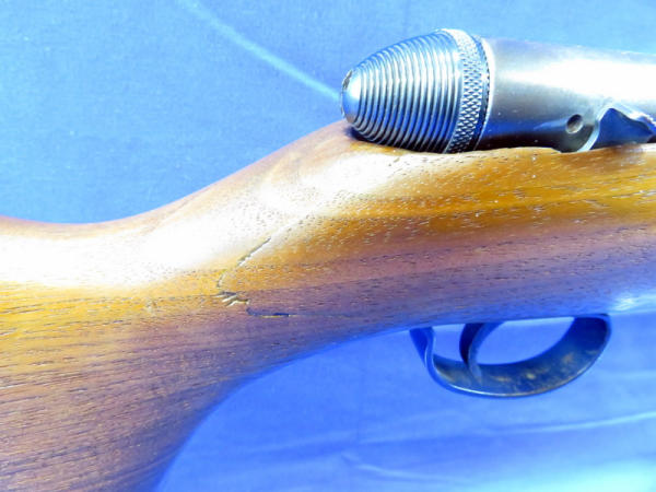 24" BBL; bluing loss by muzzle; has been tapped for scope; wood has a fixed crack on right side of stock; no SN#