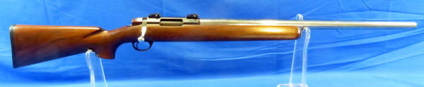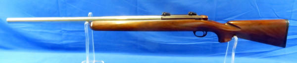 heavy 26" stainless barrel; extremely heavy firearm; thick forearm on stock; near mint; smooth action; no SN#