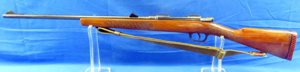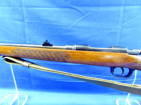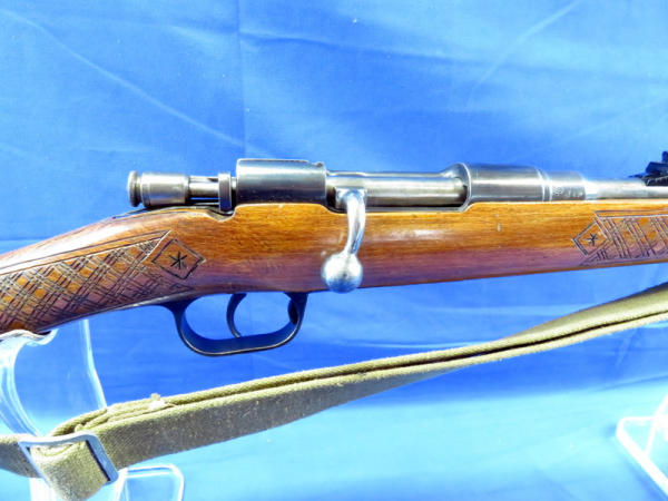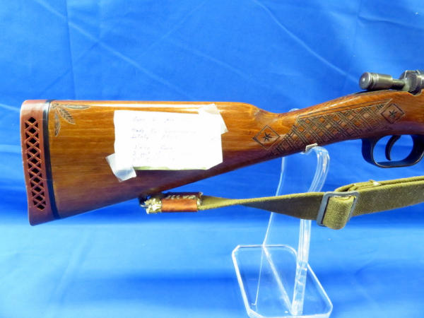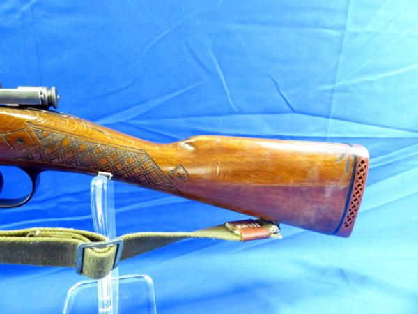 believe this is an Italian Carcano, unsure on the model; smooth action; 23" Bbl.; heavily sporterized; hand checkering; comes with a box w/2-rounds of ammo and one brass casing; SN#C7588