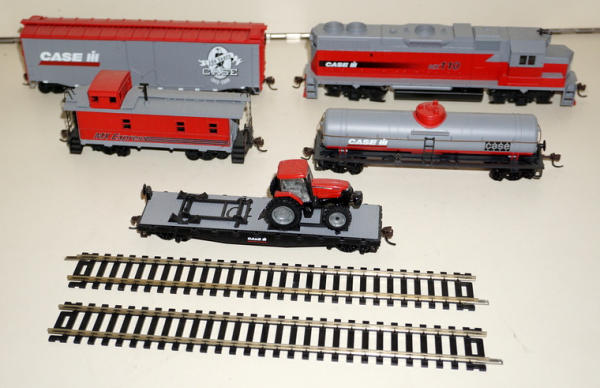 5-cars, missing one tractor on the flat car, engine is about 8" long, sells as a set for one money