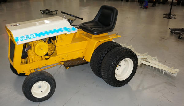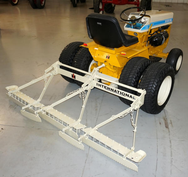 Tractor has been nicely repainted, but we have not started it, was running when it went into the collection; Golf Course rake was found in the original box and never used; sells as a family for one bid