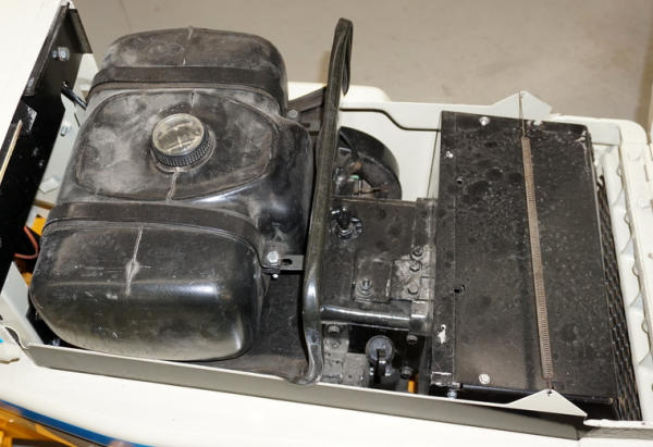 1-cylinder engine, gear drive, no deck, nicely repainted, very few 800 were built; have not had running, was running when it went into the collection