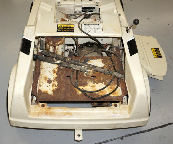 pretty nice original from the outside, no batteries and a little rusty under the hood; original plastic cover, decals are a little scuffed, but overall a pretty nice and unique original; tires are flat
