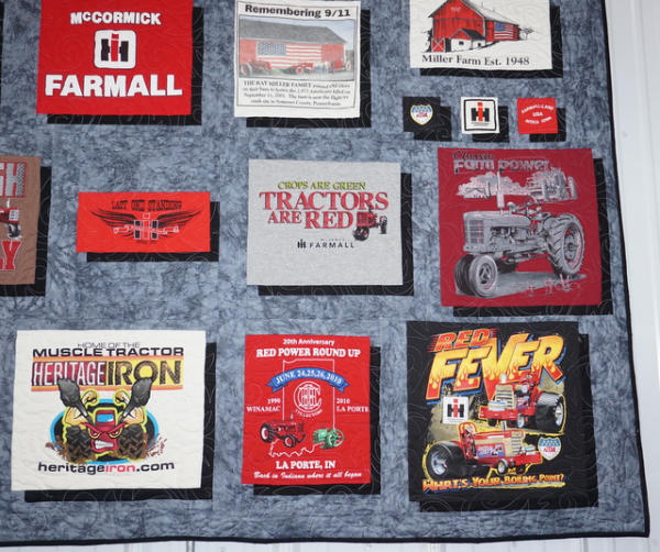 Farmall Land, Red Power, Heritage Iron, Pulling Tractors and more make up this IH theme quilt, very nicely done, all machine quilted, approximately 7.5'x8'