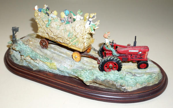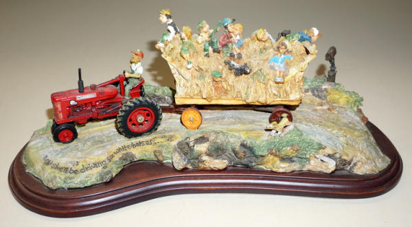 12" long, tractor is about 1/43rd scale, Ceramic on wood, no box