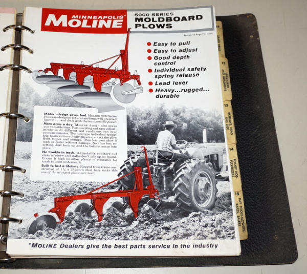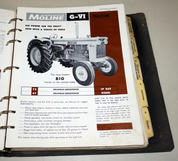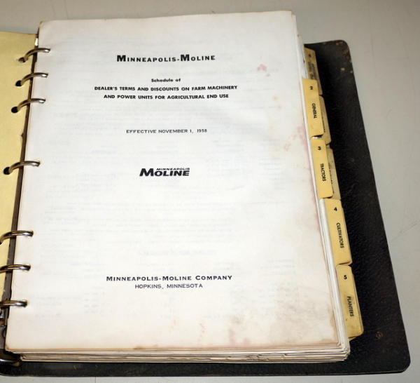 Binder has heavy wear, contents have some general wear, mainly Price lists, but includes some 1960's Tractor sales info, about 1" thick of material