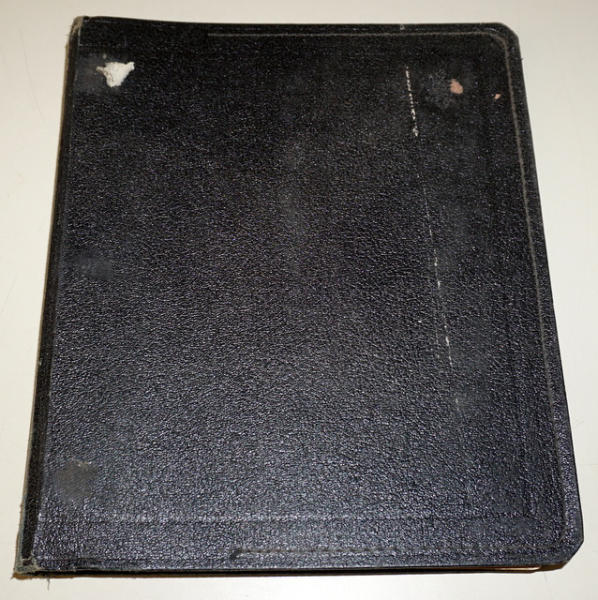 plain black binder, contents are good, binder has wear, over 1" thick of material