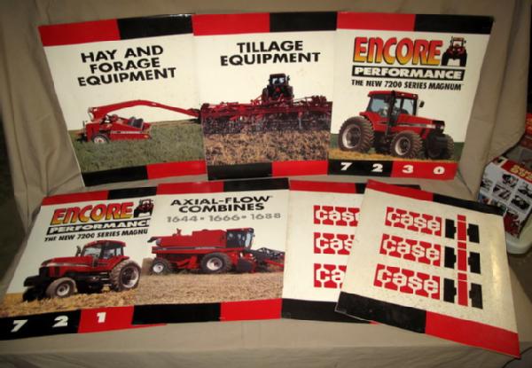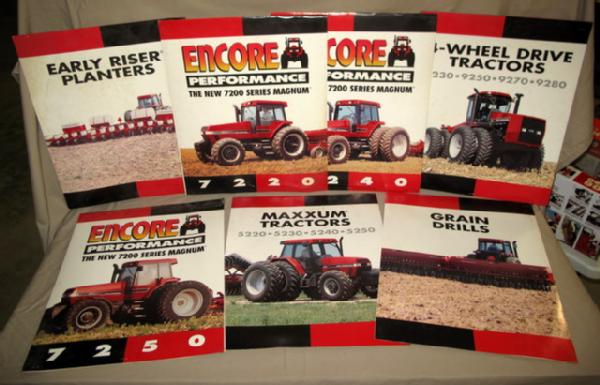 each is about 15"x18", double sided, made to hang over a twine or string, has some general wear, each one has a different piece of equipment