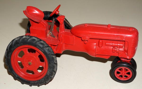 large 1/16th scale variation, plastic, has a piece missing out of the back of the seat and wind-up doesn't work; not the best condition, but a fairly rare toy for the IH collection