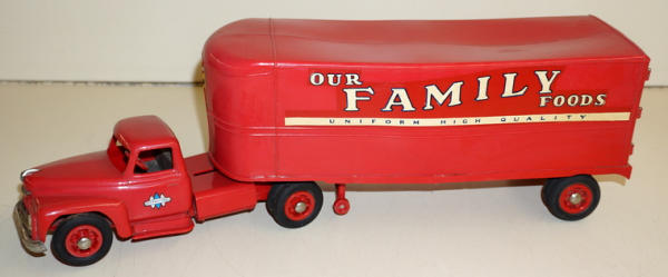 1950's plastic toy, good labels, toy warped like most of them do, but not as bad as most I have seen; hard toy to find in even "good" condition, this is about as good as you'll get one