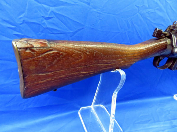 believe most likely a .303 Brit; wood has heavy wear and has been restained; action is gummed up; 25" Bbl.; import marked; made in England; SN#24890