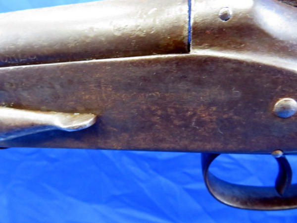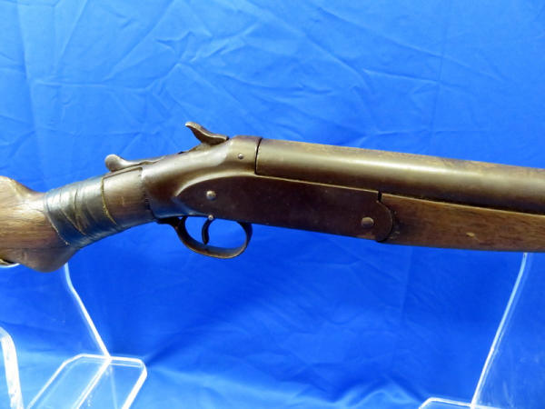 can't read the Maker or Model; opens easy; stock has damage and has been taped; 32" round Bbl.; no SN#