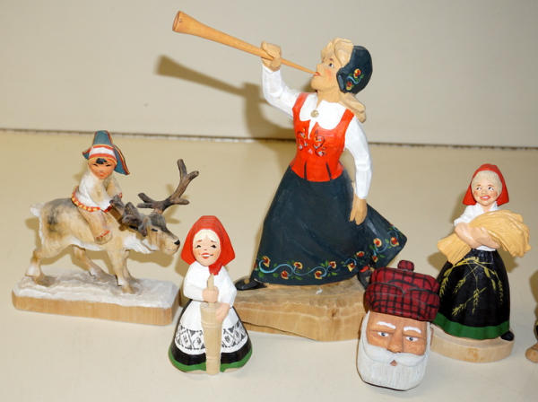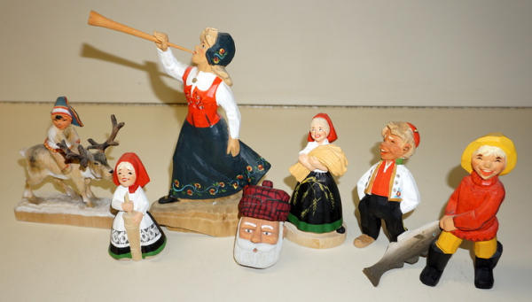largest is about 9" tall, all contemporary made pieces I think, all to go