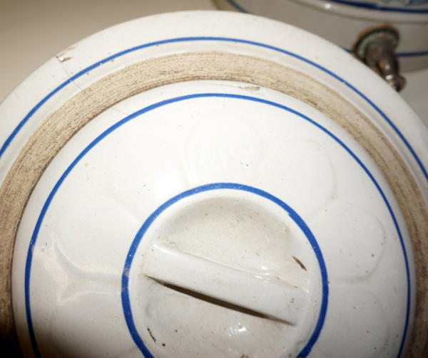 cooler is nice, no major chips or cracks that I can see; lid has a hairline crack and some paint drips; no shipping, local pickup only