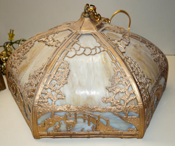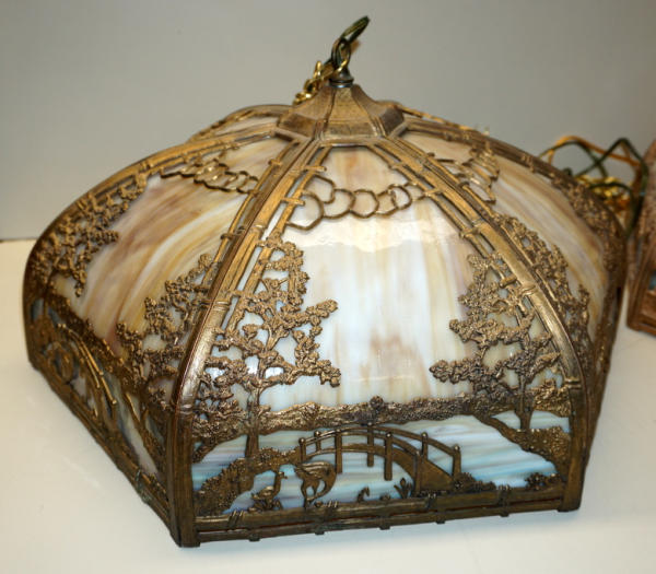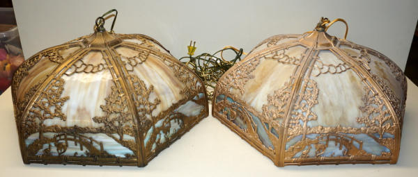 both nice, good glass, matches the table lamp in the next lot, about 19" across, sells 2x the money--NO shipping
