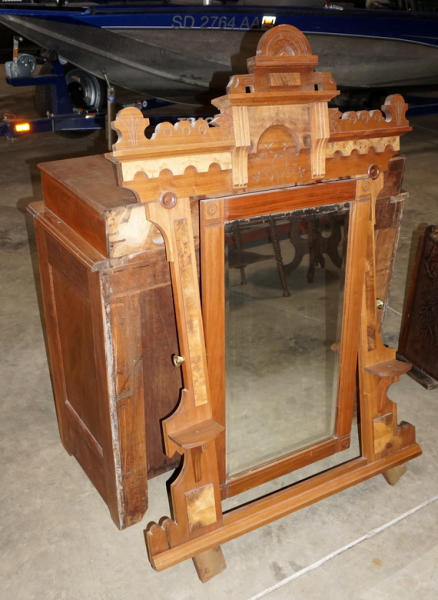 very nice, looks to have been refinished at one time, missing a ring on the hardware, we took the mirror off to move