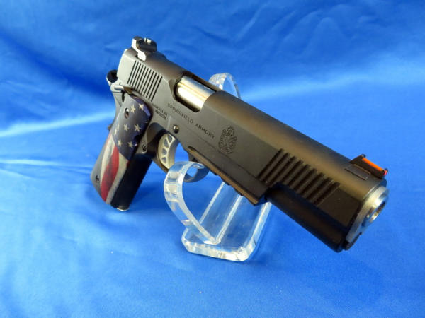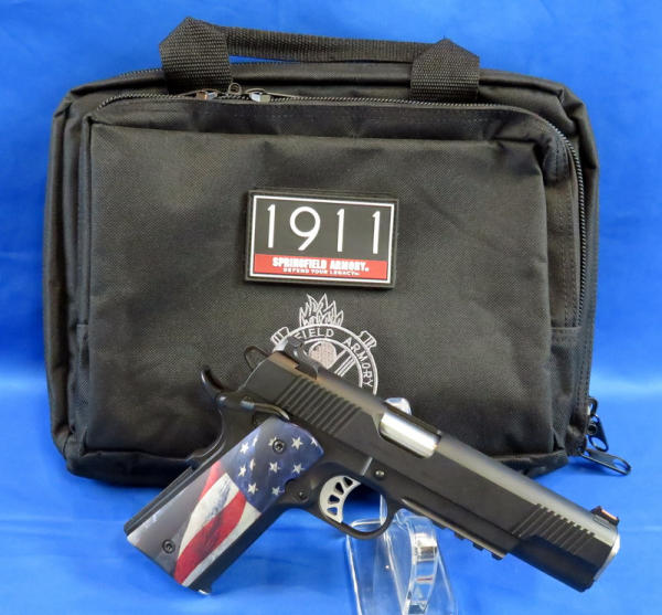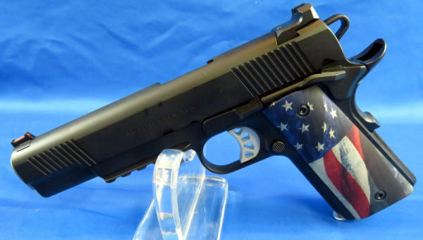 5" stainless barrel; American Flag graphic grips; 1-clip; night sights; factory padded case & original box; extra set of grips; mint & unfired; SN#NM 592246
